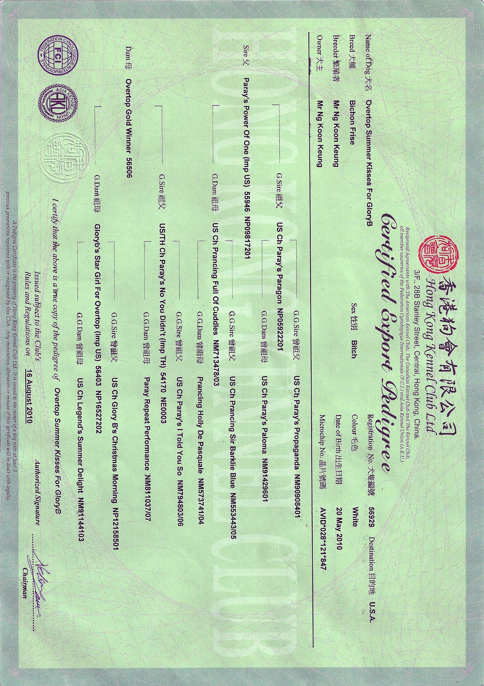 Glory Health Clearances Pedigree |